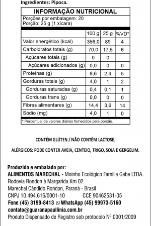 Este produto naturalmente não contém glúten, porém pode conter traços de glúten devido a contaminação cruzada.
