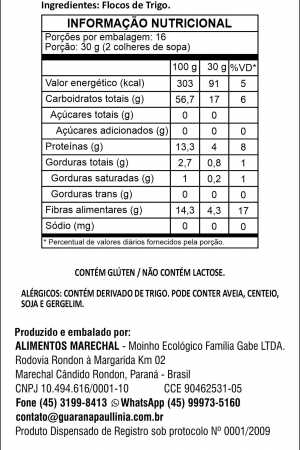 Os flocos de Trigo são produzidos a partir da prensagem do grão, de forma a conservar suas propriedades nutricionais, são comumente utilizados no preparo de receitas de massas, pães integrais, ou para engrossar mingaus, sopas, molhos e caldos.