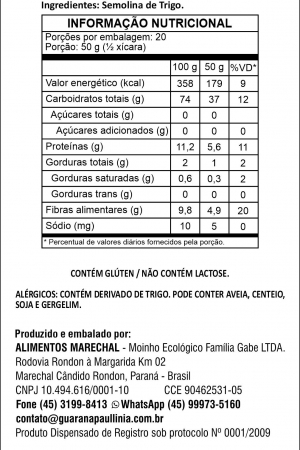 A Semolina de Trigo Paullinia é feita do Trigo Nacional e tem sua produção orgânica totalmente natural para proporcionar mais saúde para quem consome. Produto Orgânico.