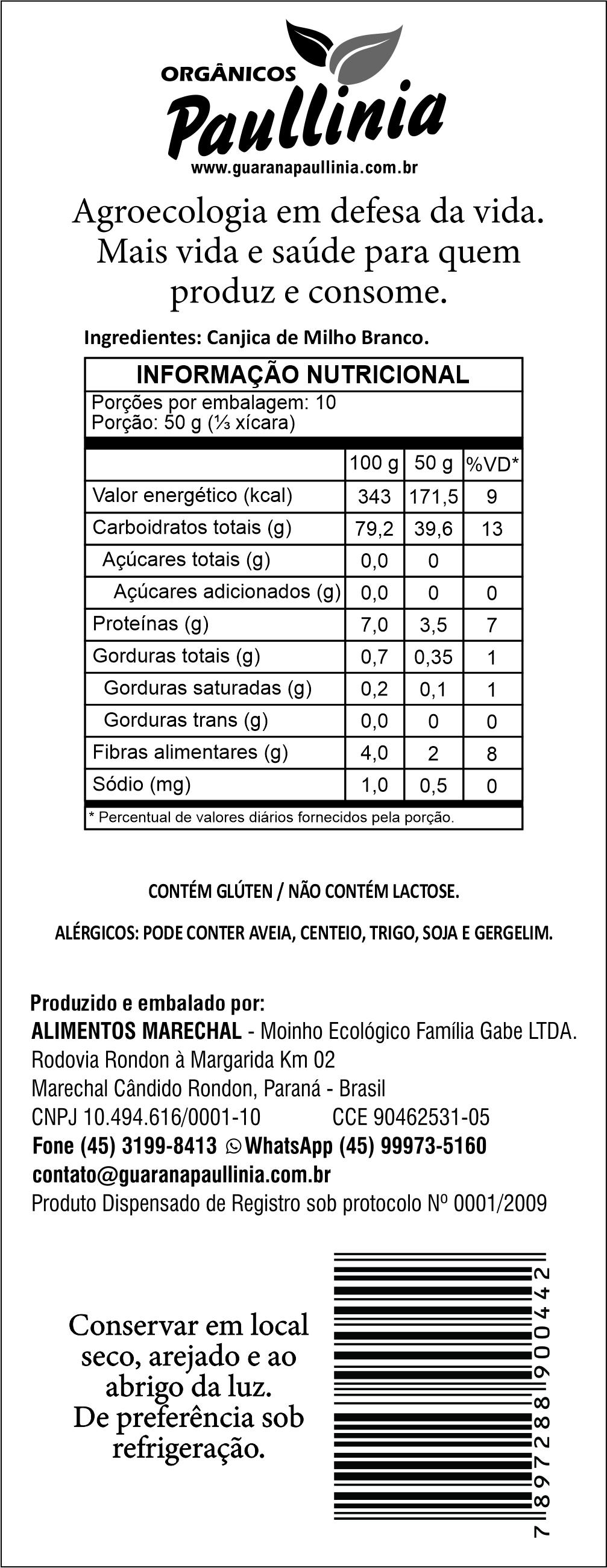 A Canjica de Milho Branco Paullinia tem sua produção orgânica totalmente natural para proporcionar mais saúde para quem consome. Produto Orgânico.